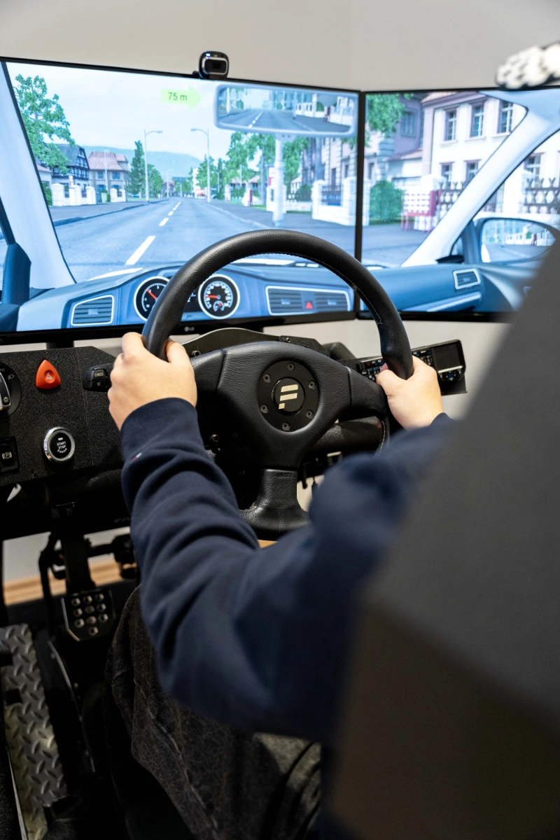 Mit unserem hochmodernen Simulator kannst du Fahrsituationen realistisch und sicher üben, noch bevor du auf die Straße gehst. Egal ob Stadtverkehr, Autobahn oder schwierige Verkehrslagen – der Simulator hilft dir, Fahrtechniken zu verfeinern, das richtige Verhalten im Straßenverkehr zu trainieren und selbstbewusster ans Steuer zu gehen. Dank der präzisen Steuerung und realistischen Darstellung wird jede Fahrsituation besonders realitätsnah erlebbar.